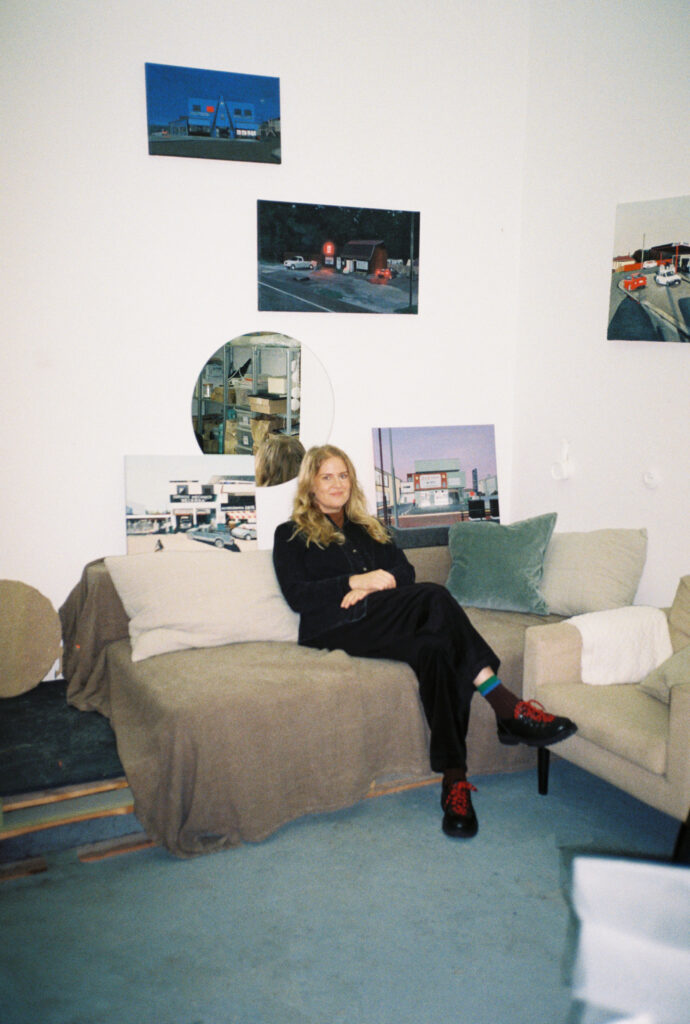 – Čia vėl apie tą balanso sukūrimą tarp dviejų skirtingų būsenų. Vienaip ar kitaip sukuriu žmogaus buvimą – ar tai įjungta šviesa, ar vos matomas mano, sėdinčios priparkuotame automobilyje, autoportretas.