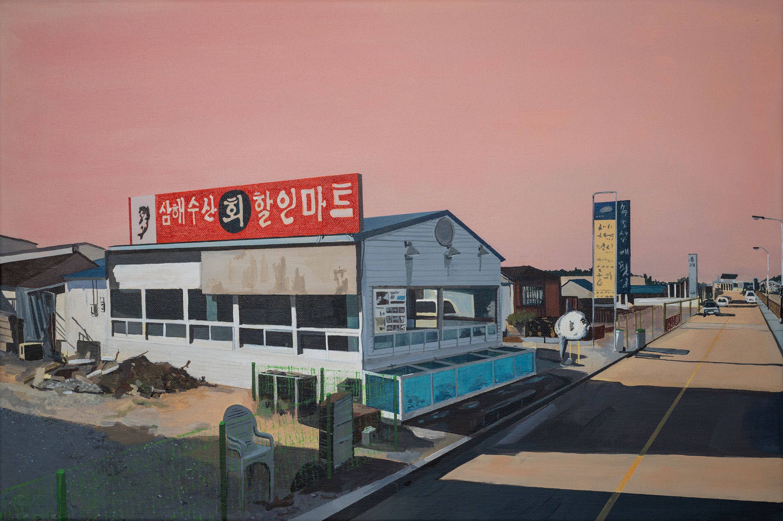 Man patinka palikti tam tikrus trūkumus – tarkime, keistai pasibaigusią namo liniją ar išsikraipytą perspektyvą. Dėl to nutapau ir pačius paveikslo kraštus, tarsi ištempdama paskutinius pikselius, likusius palei briauną. Ruošiant kai kurių paveikslų eskizus esu eksperimentavusi ir su dirbtiniu intelektu. Pavyzdžiui, paprašius sukurti saulėlydį vienoje sankryžoje, DI suklydo ir saulės atspindys pasirodė dvejose skirtingose pusėse. Man ši klaida pasirodė įdomi ir net poetinė, todėl ją palikau galutiniame kūrinyje. Paveikslą pavadinau „Two Sunsets“.