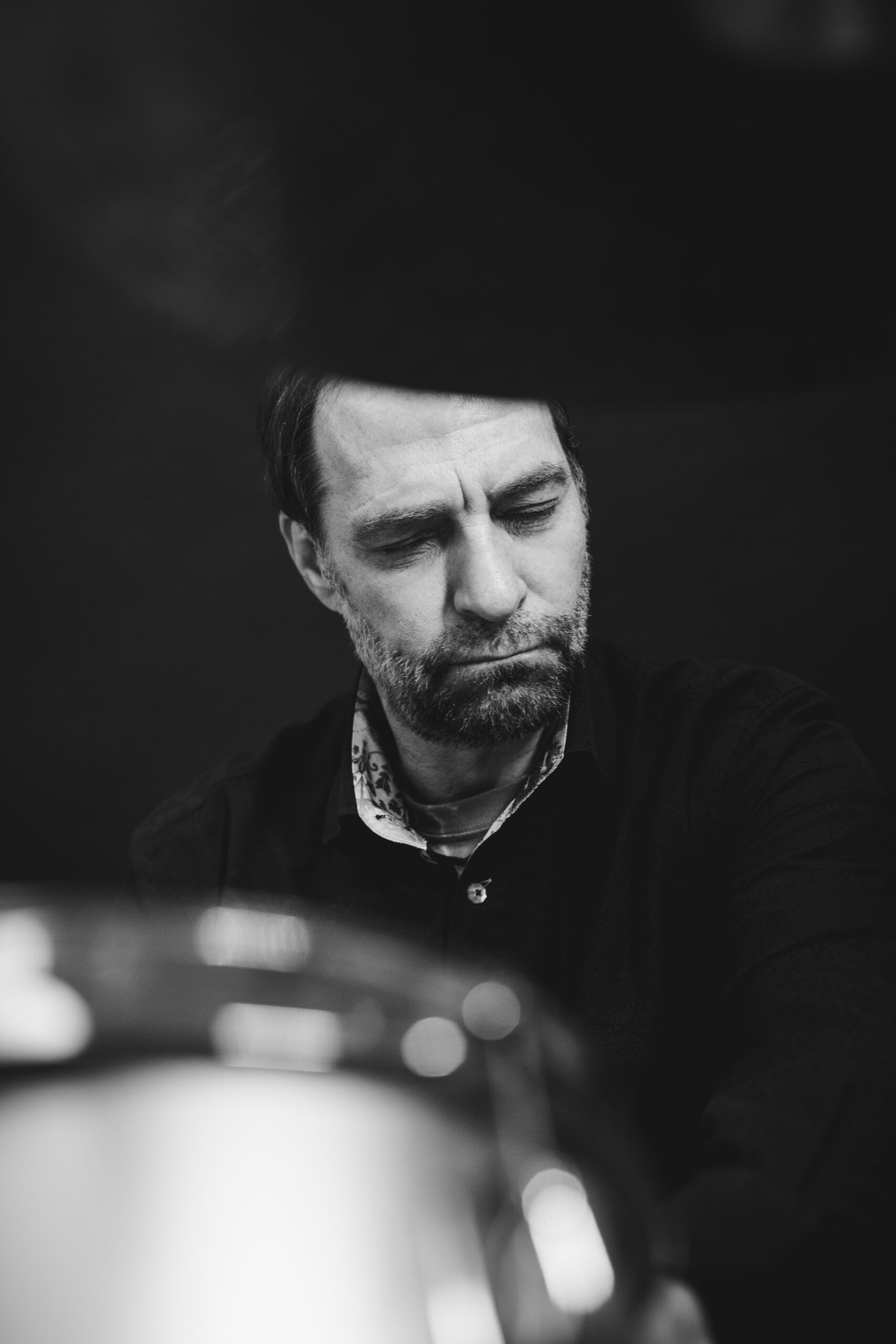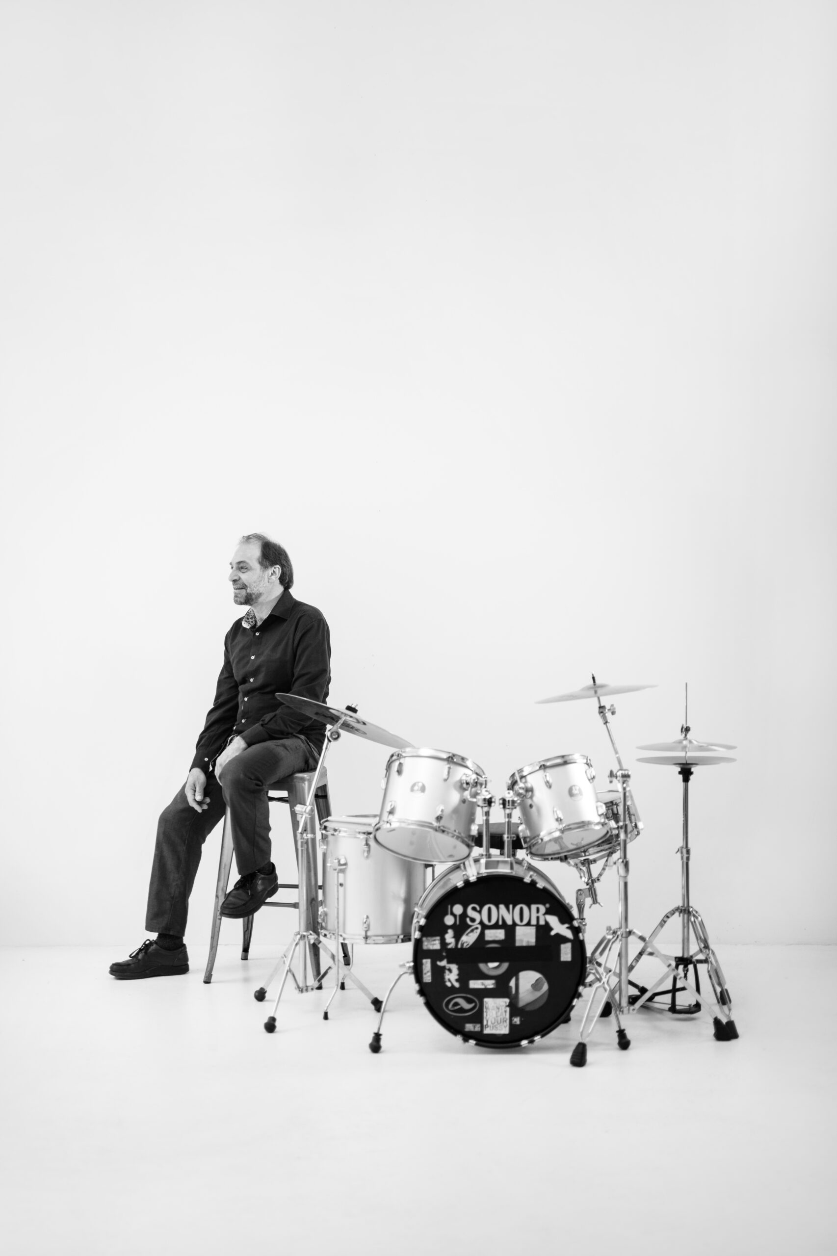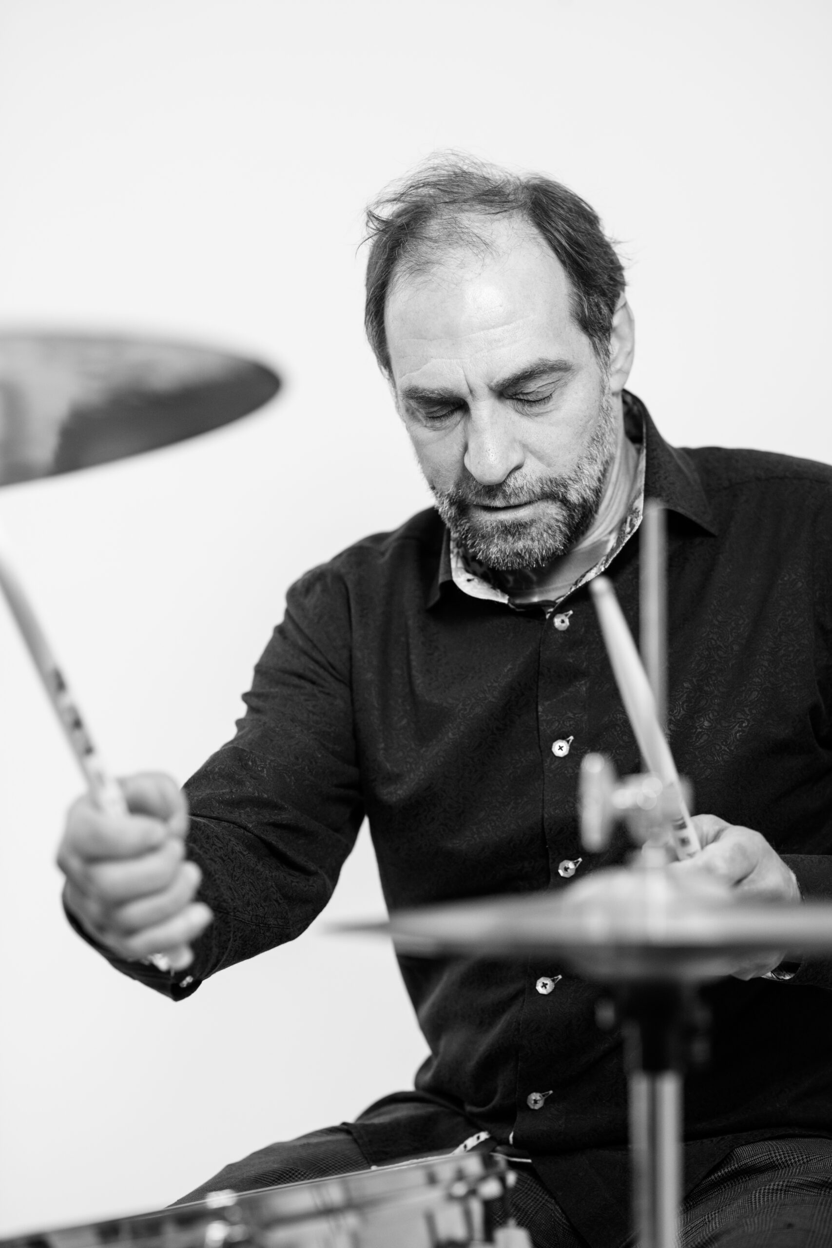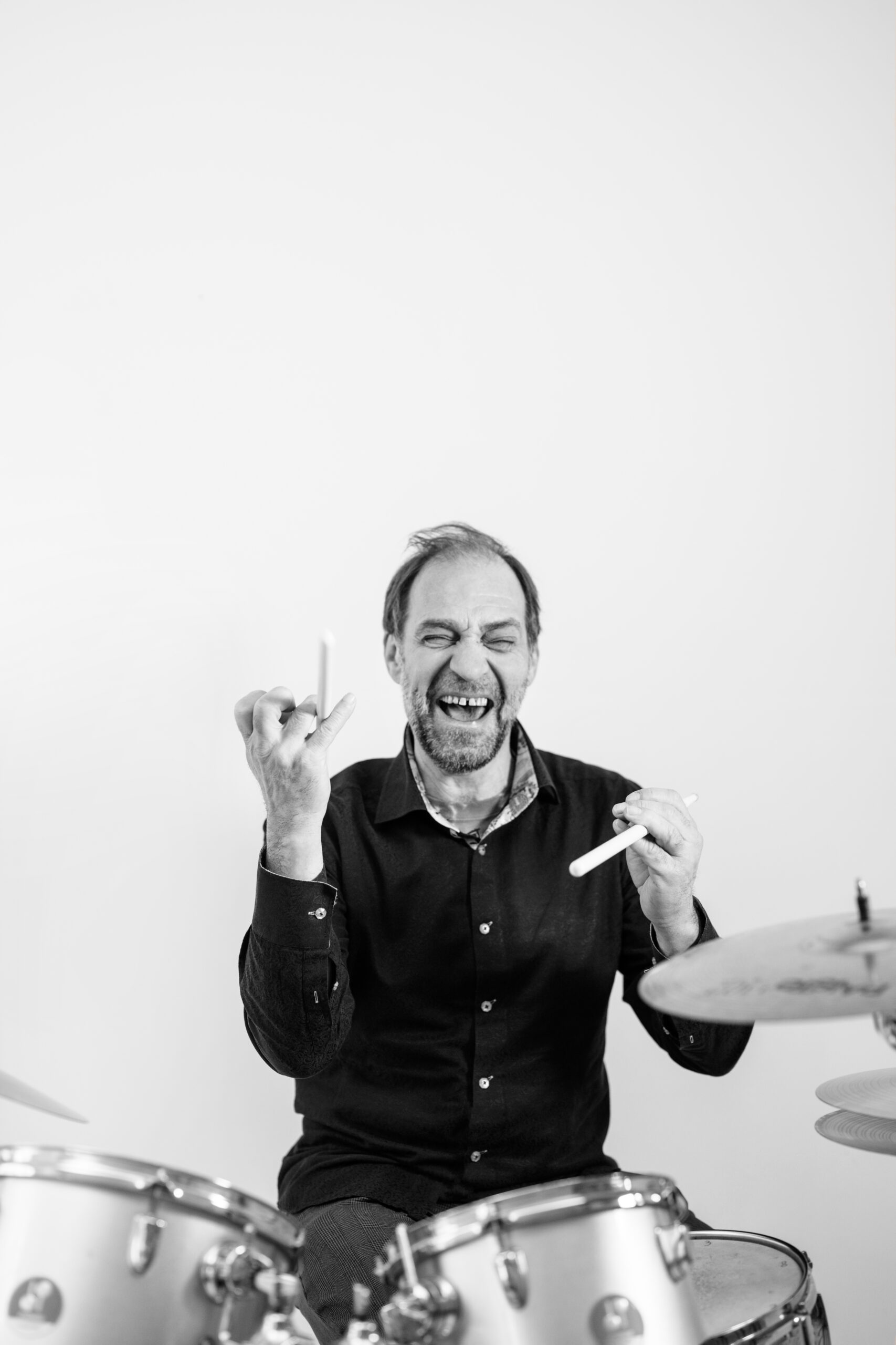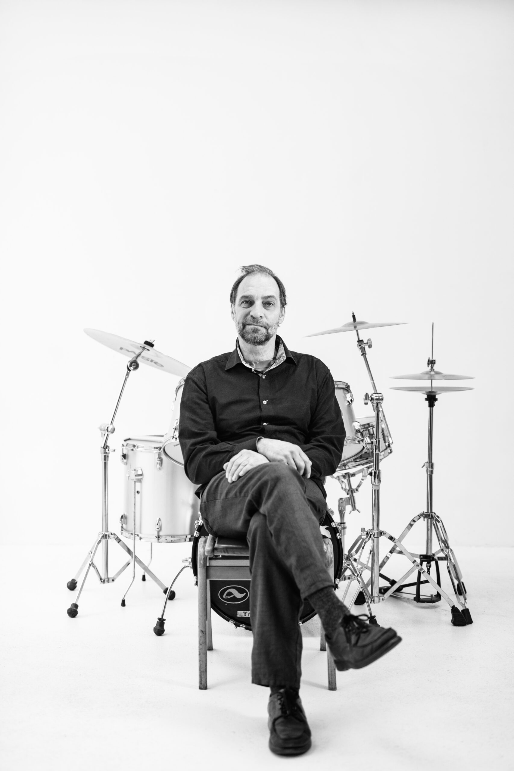 Beveik trisdešimt metų Niujorke gyvenantis, su bičiuliu Jonu Meku „Antologijos“ kino archyve nuolat muzikavęs laisvojo džiazo būgnininkas, perkusininkas, dirigentas ir performansų autorius Dalius Naujokaitis-Naujo sako, kad išjungus ar įjungus muziką pasikeičia ne tik erdvė – pasikeičiame ir mes. Tuo netrukus įsitikinu prasidėjus fotosesijai – vos Daliui pradėjus muzikuoti, sėdžiu ant kėdės ir stebiu procesą it užhipnotizuota. Truputį laisvesnė, truputį lengvesnė, truputį labiau čia ir dabar.