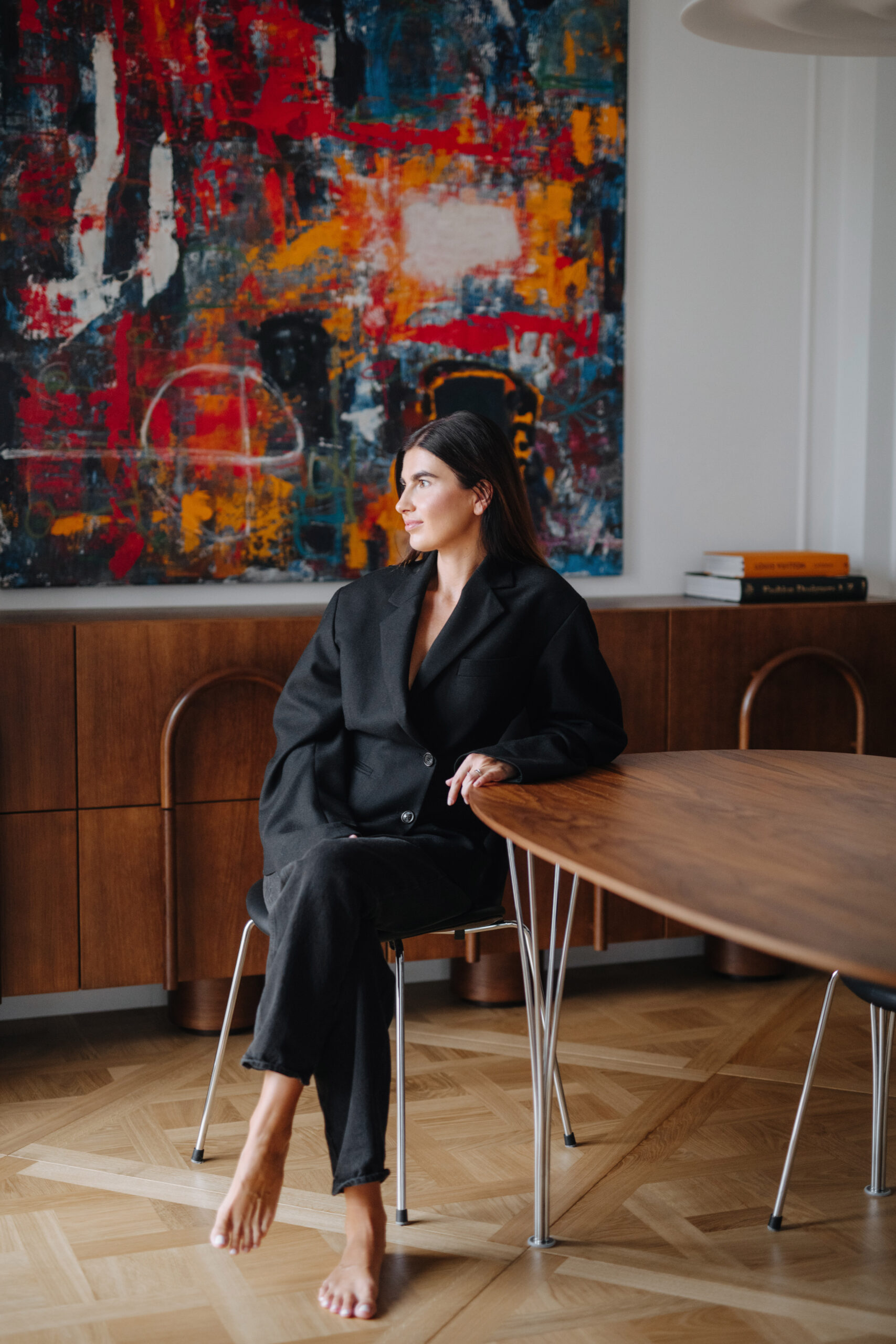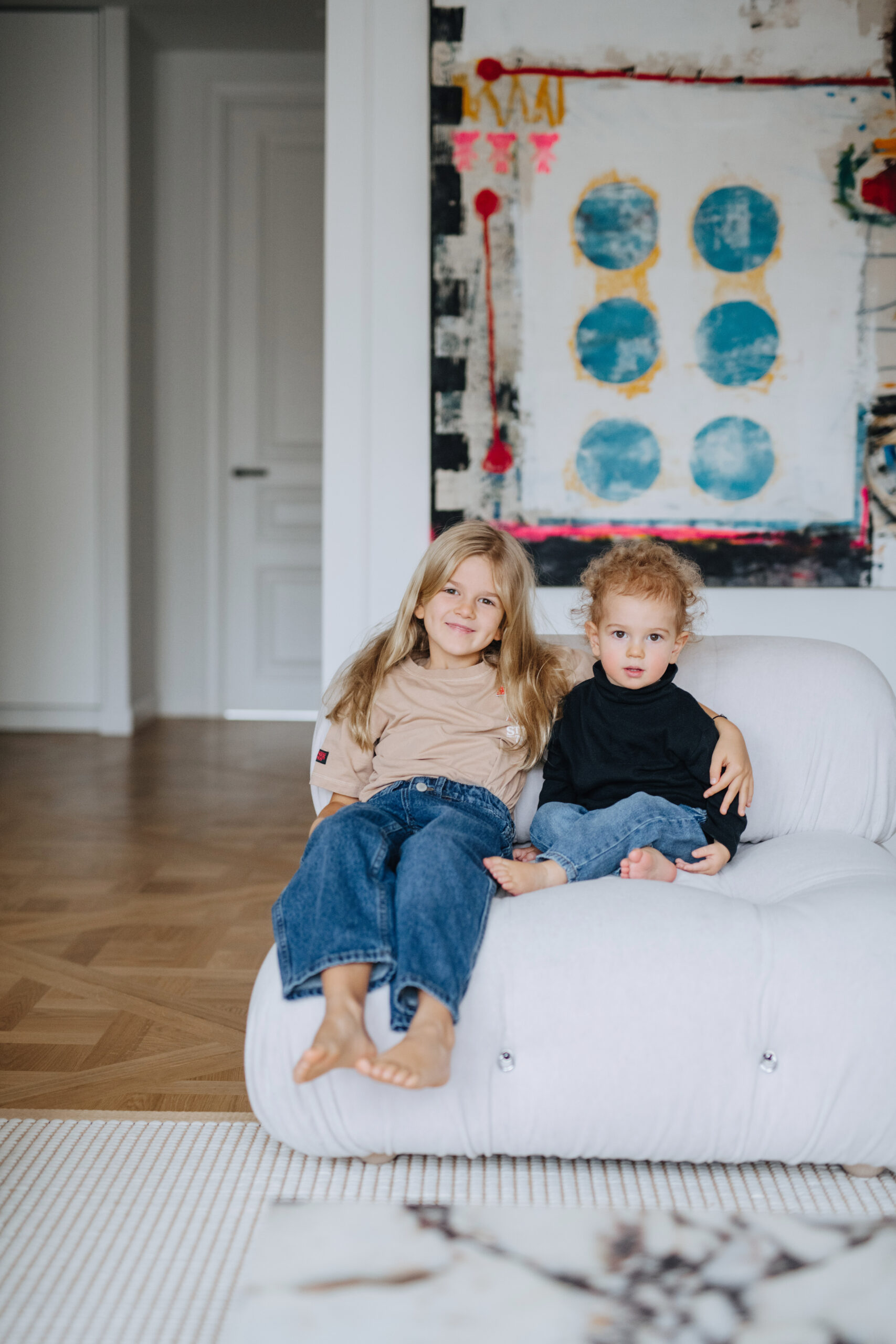 Nesumeluosiu pasakydama, jog muzika pas mus skamba beveik kiekvieną dieną. Ankstyvus rytus pradedame su muzika, kad pusryčių kąsnis vaikams būtų nuotaikingesnis, ypač šaltuoju, tamsiuoju periodu tai kelia ūpą visai dienai. Knygoms šiuo etapu daugiausiai laiko randa mūsų mažiausieji, o mes juos stebime ir žavimės. Vis pasvajoju apie knygų lentynas per visą sieną. (Šypsosi.) Kartu mielai žiūrime ir filmus. Mėgstu gaminti, todėl dabar, augant Tajui, vėl galiu pasidžiaugti galimybe grįžti į savo virtuvę. Buvo etapas, kai tų laisvų rankų tiesiog nebuvo. Na, ir jei jau pradėjome kalbėti apie virtuvę, tai būnant joje mano akis džiugina Eigirdo Scinsko darbas – jis mane visada energizuoja ir labai gerai nuteikia. Šio ir kitų kūrėjų darbai – taip pat neatsiejama mūsų namų dalis.