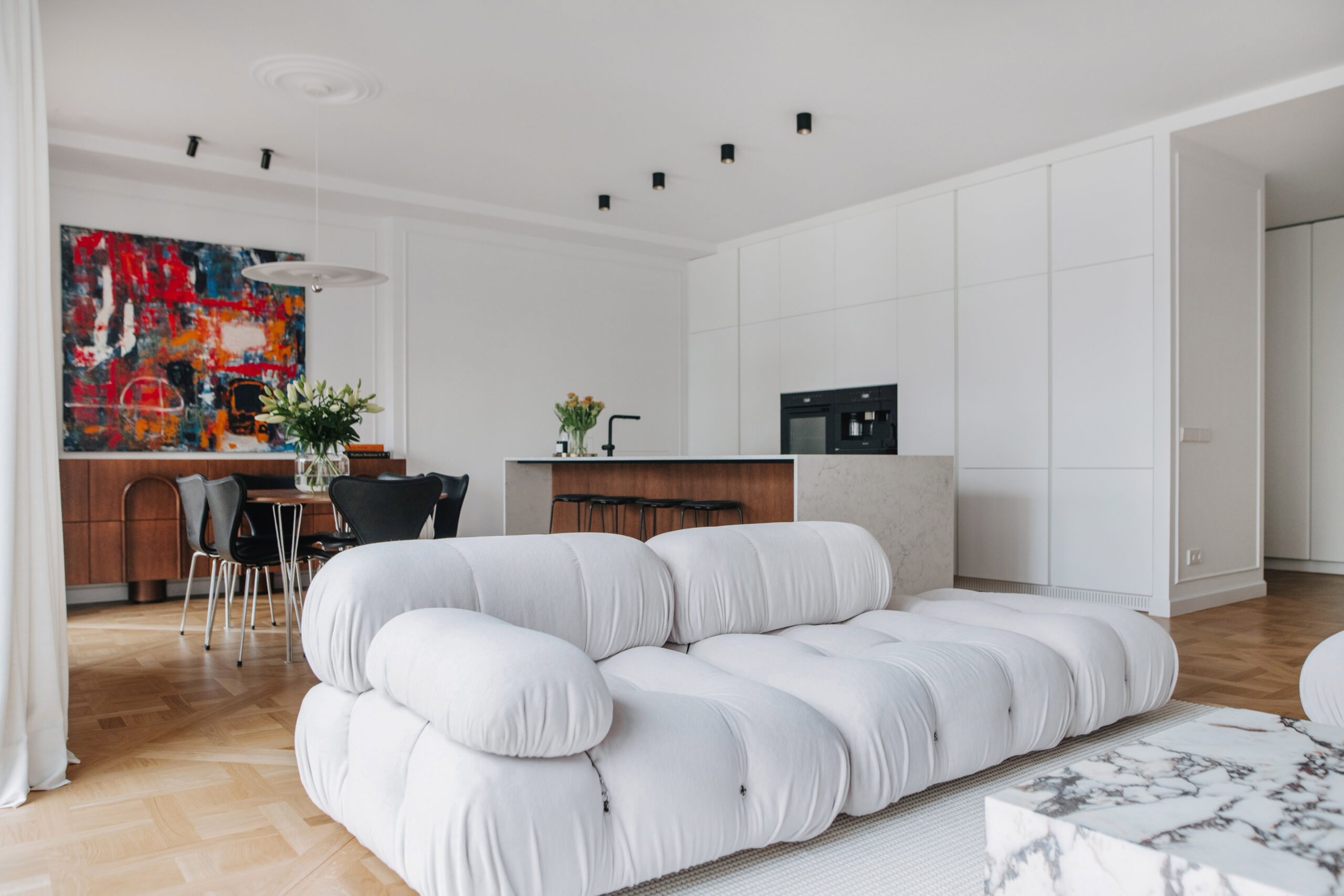 – Kol daiktai suranda savo vietą mūsų namuose, būna daug svarstymų – prireikia laiko priimti sprendimą. Išimtis – tik meno kūriniai, kurie tiesiog akimirksniu rado vietą svetainės zonoje. Mano nuomone, svarbiausia, ar tam tikras daiktas galiausiai išpildo lūkestį. Jei pavyksta pasiekti norimą vaizdą ir emociją, vadinasi, pasirinkta teisingai. Dar tik dėliojant būsimų namų viziją galvoje jau pamačiau „Camaleondą“ ir nuo tos akimirkos supratau, kad jai lenkiasi visos kitos sofos. Mano akimis ji tarsi funkciją turintis meno kūrinys. Švelnios linijos ir griežta geometrija labai gražiai suskamba erdvėje, todėl rasti jai alternatyvą man pasirodė beveik neįmanoma. Ne veltui tai ikona!