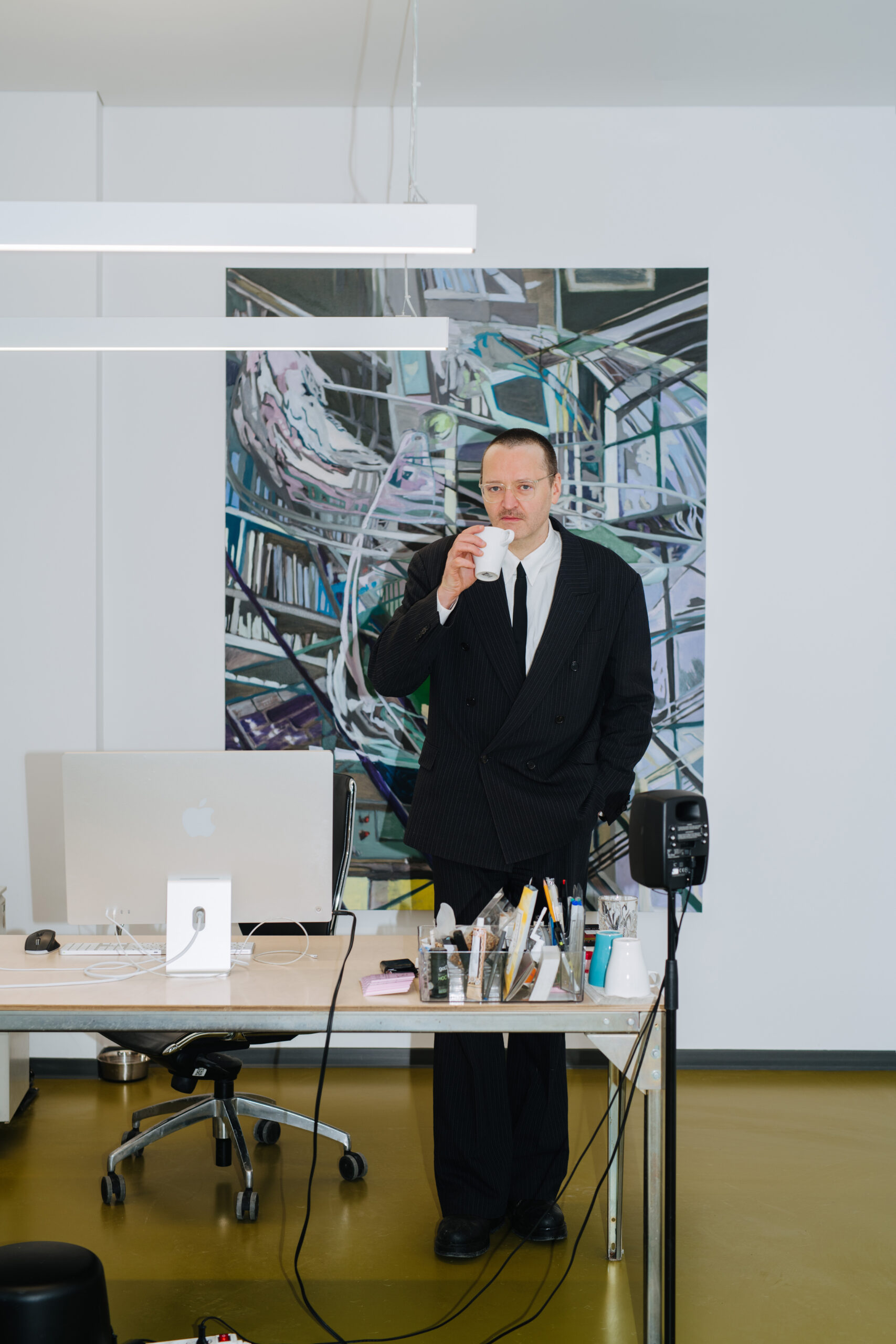 Pas Vilniaus Šiuolaikinio meno centro vadovą Valentiną Klimašauską ateinu su šviežiomis bandelėmis. Centras dar nedirba, Valentinas mane pasitinka prie durų, mes pereiname visas sales; netrukus čia keisis parodos, o kavos dėmės ant kilimo neišvalytos. Beeidama išgirstu istoriją apie dvi menininkes – lietuvę ir ukrainietę, kurių kūrinius buvo galima pamatyti parodoje „Varpai ir patrankos. Šiuolaikinis menas militarizacijos akivaizdoje“. Deja, šios ekspozicijos pabaigos jos nebesulaukė. Galvoju apie tai, kad kiekvienas kariaujame savus karus. Mudu pasukame ilgu koridoriumi, kuriuo vaikšto tik centro darbuotojai. Aš prisėdu ant kėdės jo kabinete, Valentinas išbėga atnešti kavos. Galvoju: kaip viskas buitiška! Tik keistas vaizdas už lango – seni, neremontuoti pastatai ir juos apraizgę metaliniai vamzdžiai – primena, ko atėjau: pasikalbėti apie tai, kas šiandien yra šiuolaikinis menas.